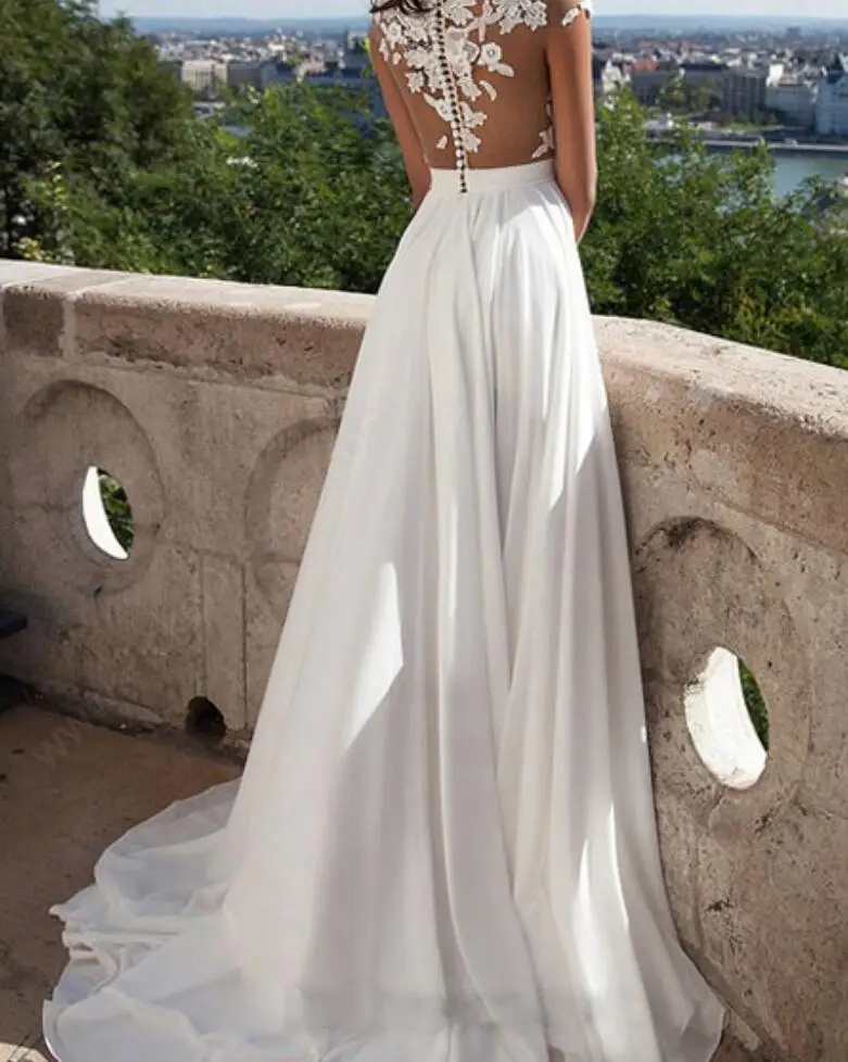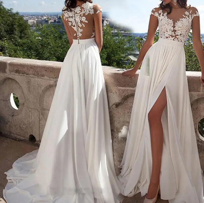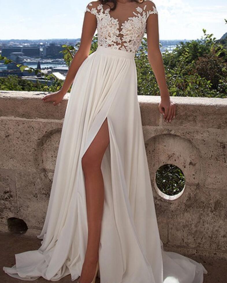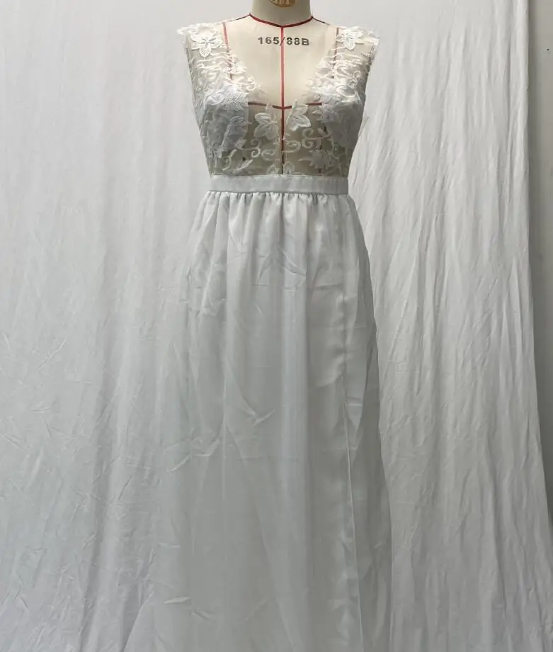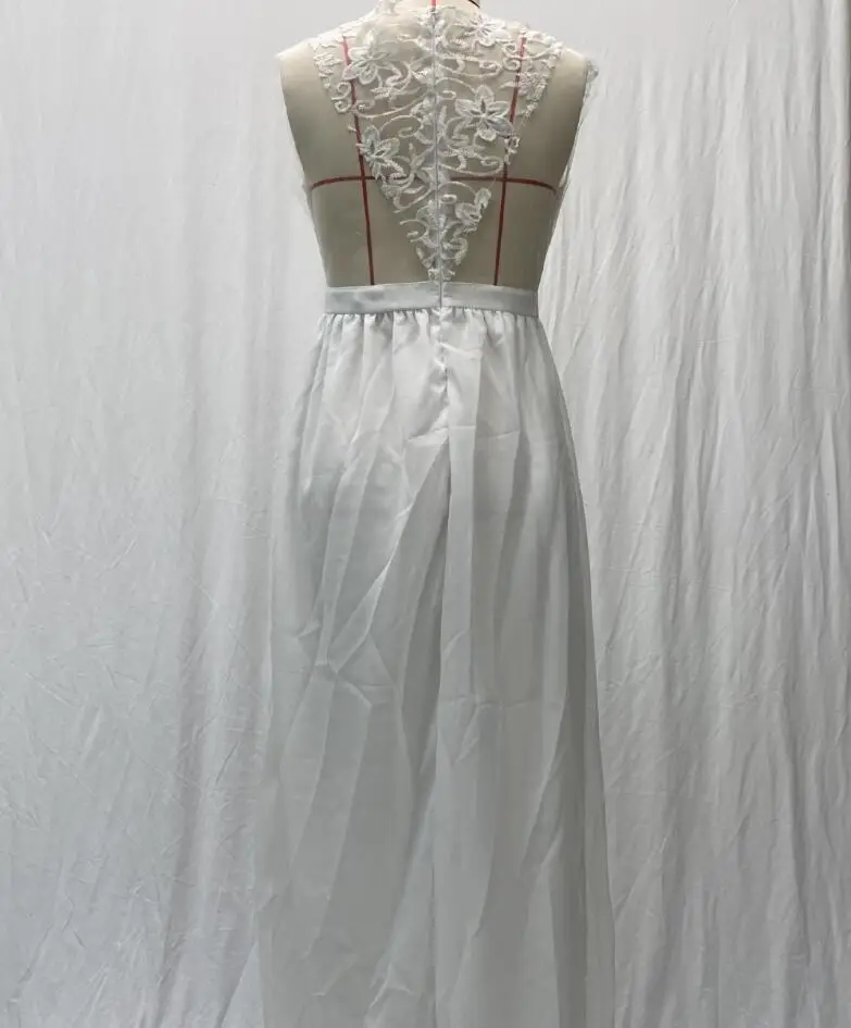 Nuovo vestito senza maniche in tinta unita con spacco in pizzo Sexy per le donne