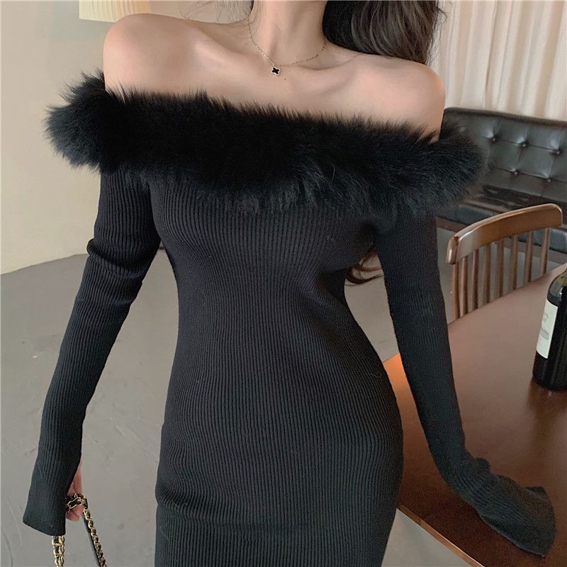 Off-shoulder Sweaters Dress Women's Autumn And Winter Leisure Slim Fit