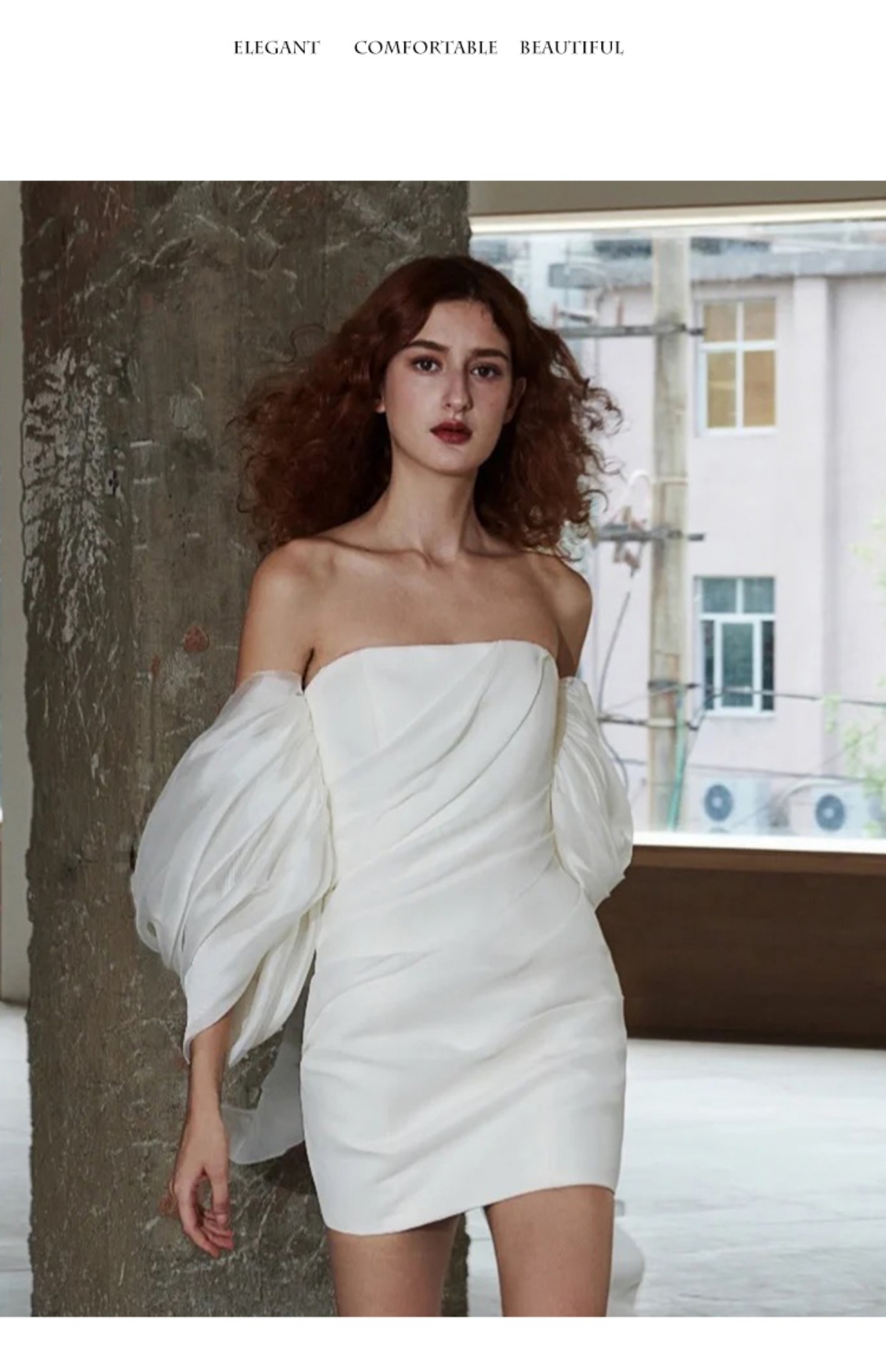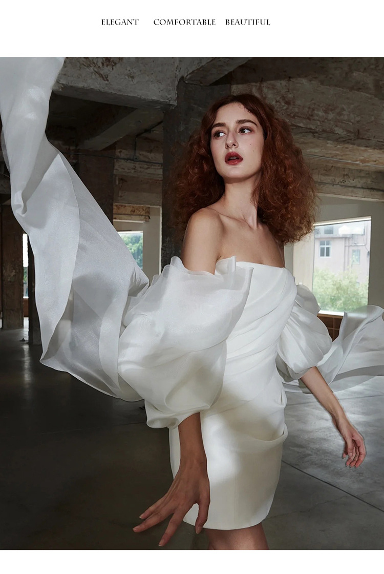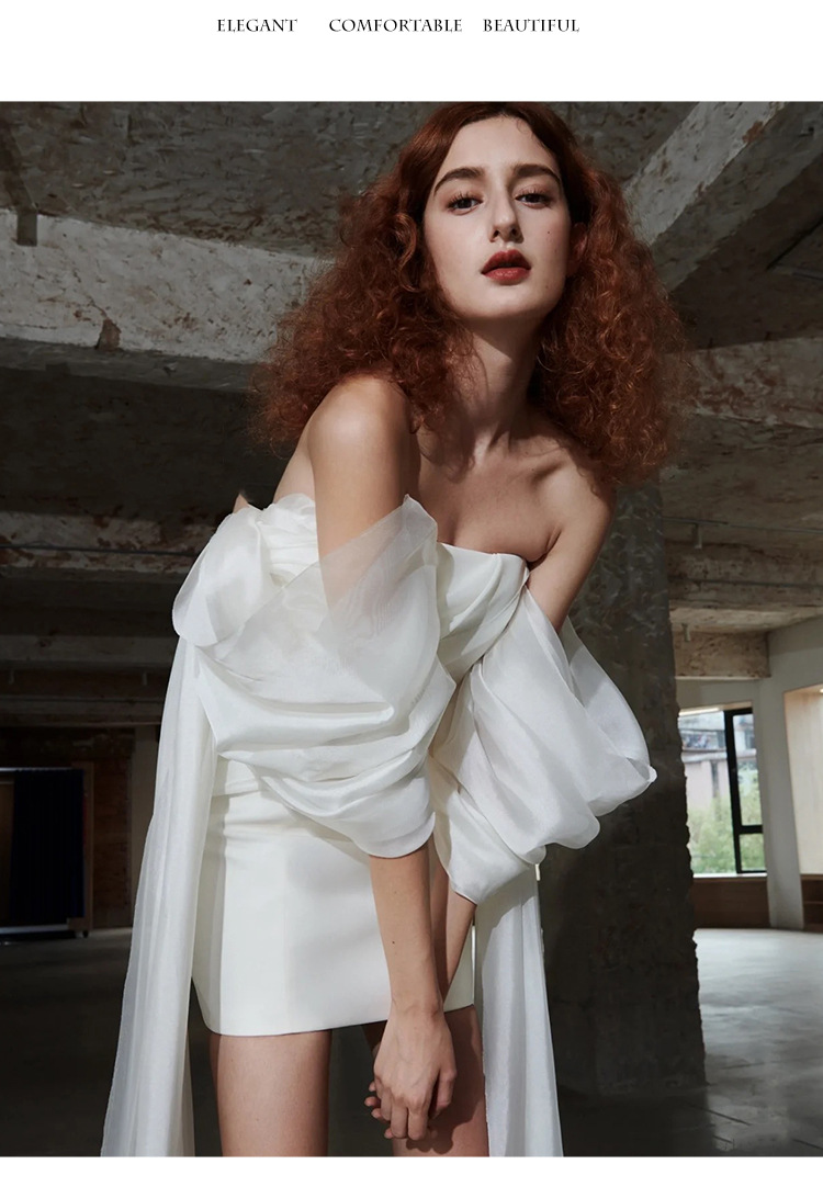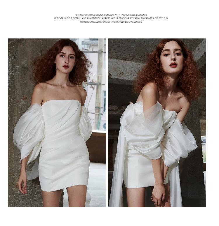 One-Shoulder Light Wedding Dress French Simple Retro Elegant Out-door Yarn Welcome Short Light Dress Wedding Dress