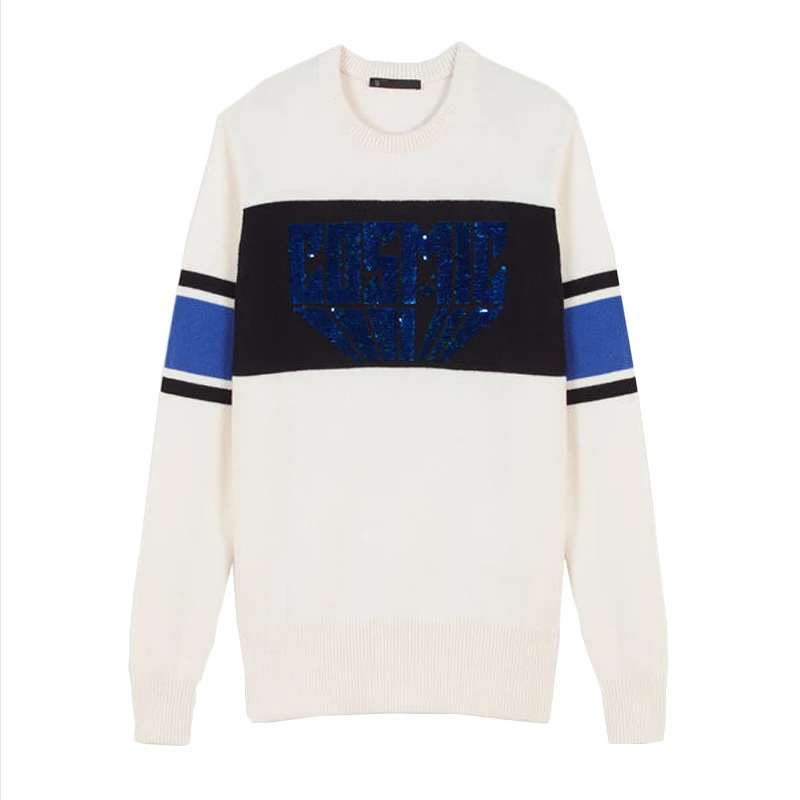 Patads French minority knitted sweater contrast color round neck long sleeve Sequin autumn and winter versatile lady pu00208