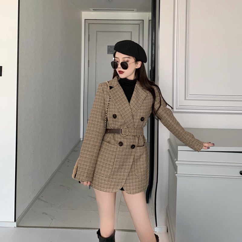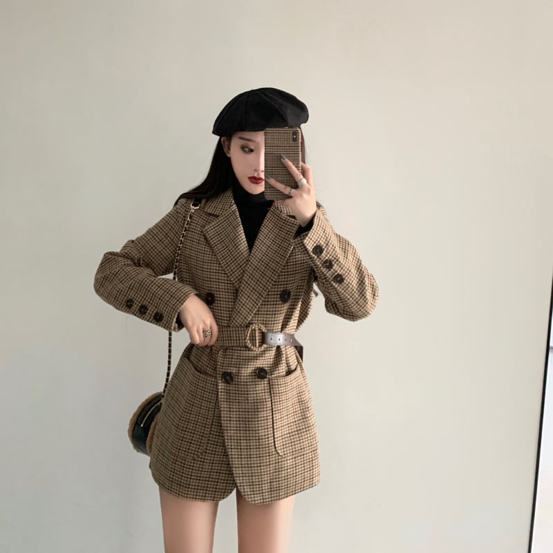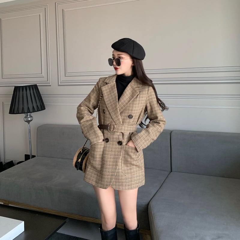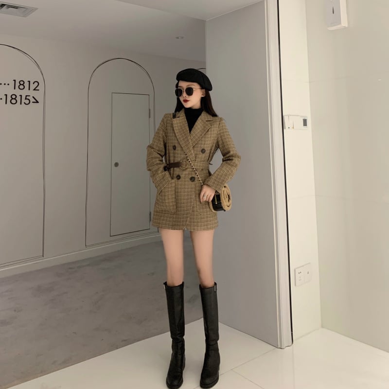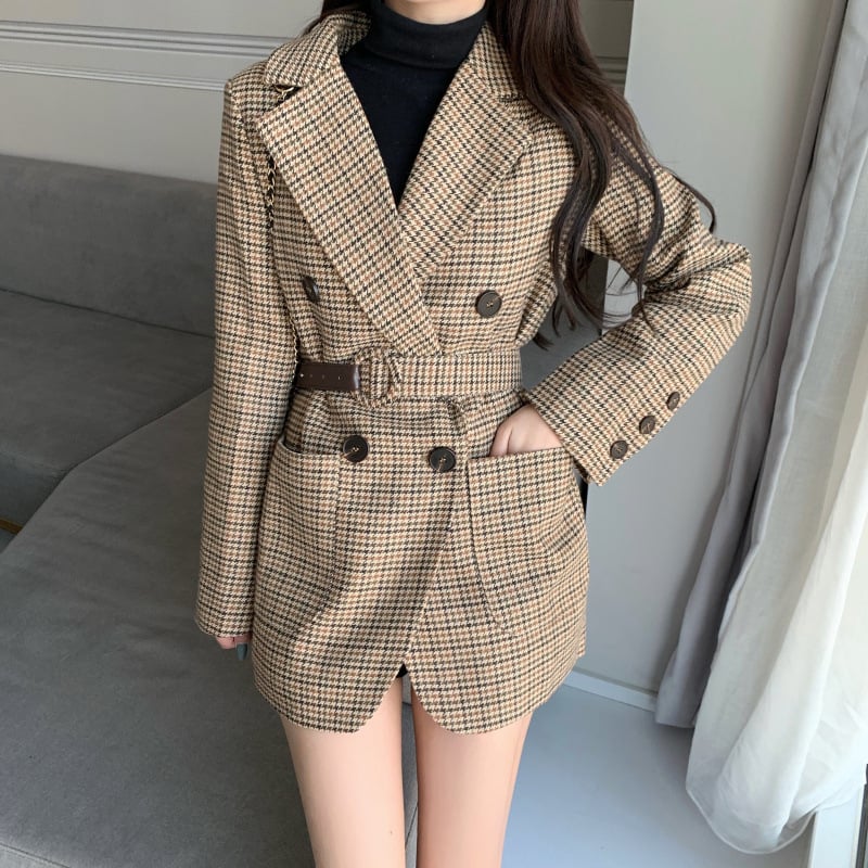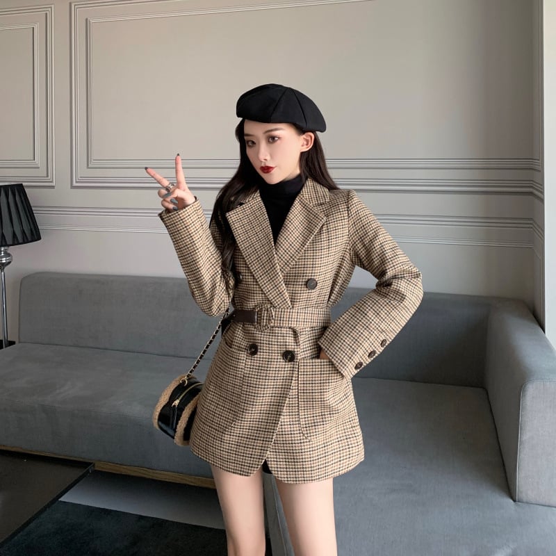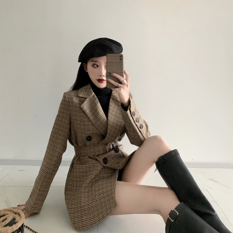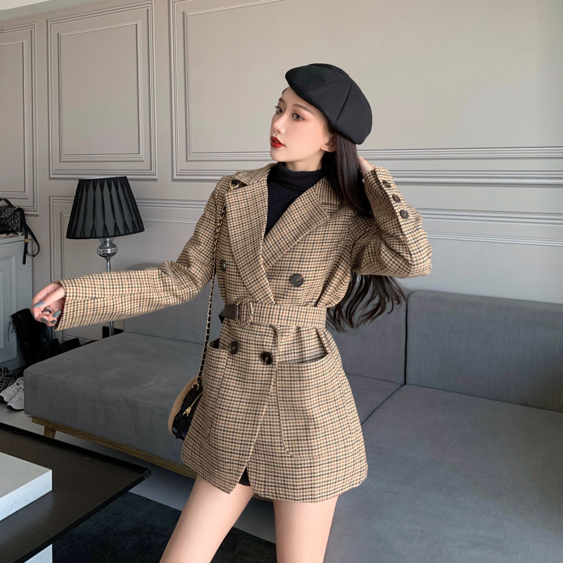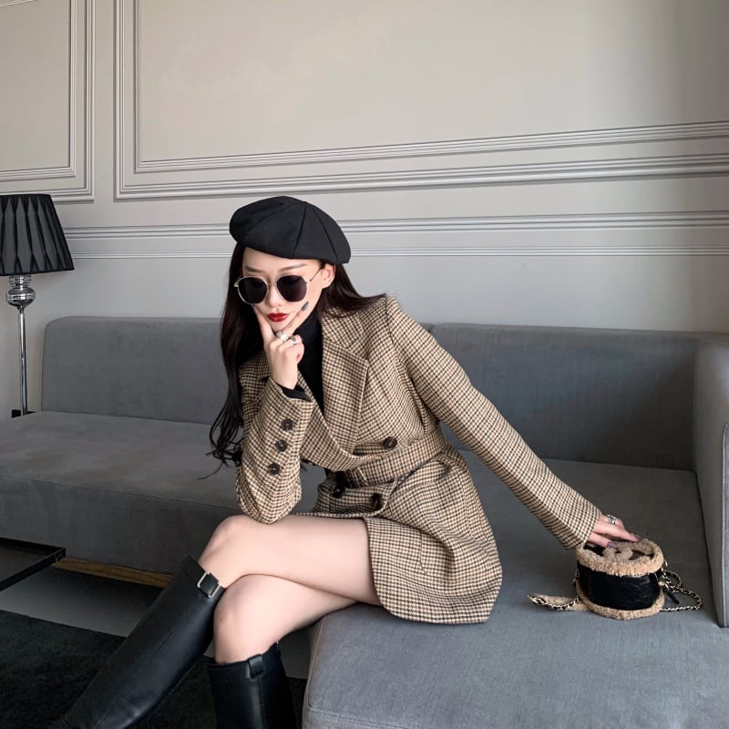 Plaid small suit lace-up woolen jacket
