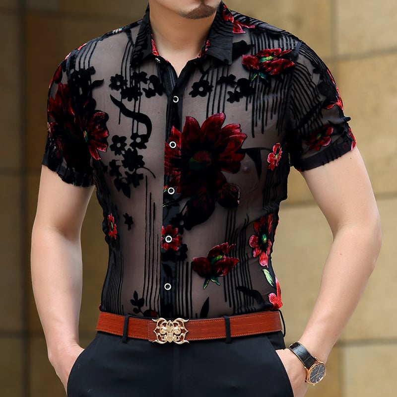Prom Shirt Short Sleeve Chemise Homme Transparent