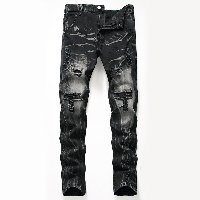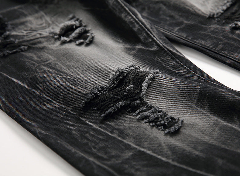 Ripped Black Jeans Men's Autumn And Winter Plus Size Straight-leg Denim Denim Trousers