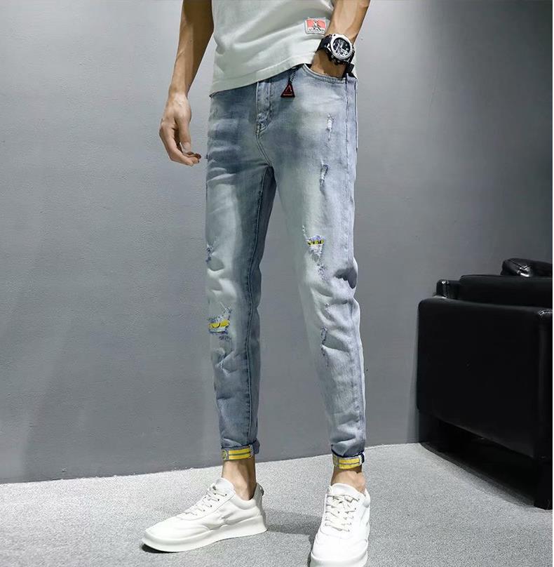 Ripped Jeans Men'S Summer Thin Section Korean Version Of The Trend Handsome Self-Cultivation Small Feet Casual Nine-Point Pants Power Tide Brand