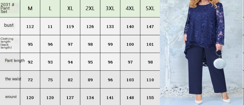 Set with Women's Pants and Lace Overlay Blouse - Plus Size