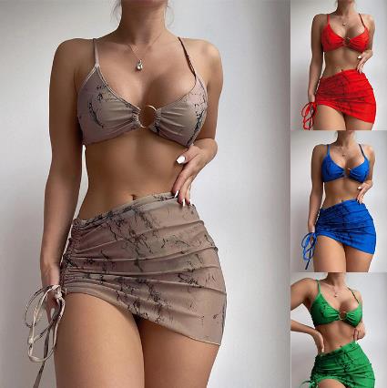 Sexy Women Swimsuit Push Up Beachwear Bathing Suit Summer Three-Pieces Bikini Female Swimwear Thong Bikini with Skirt