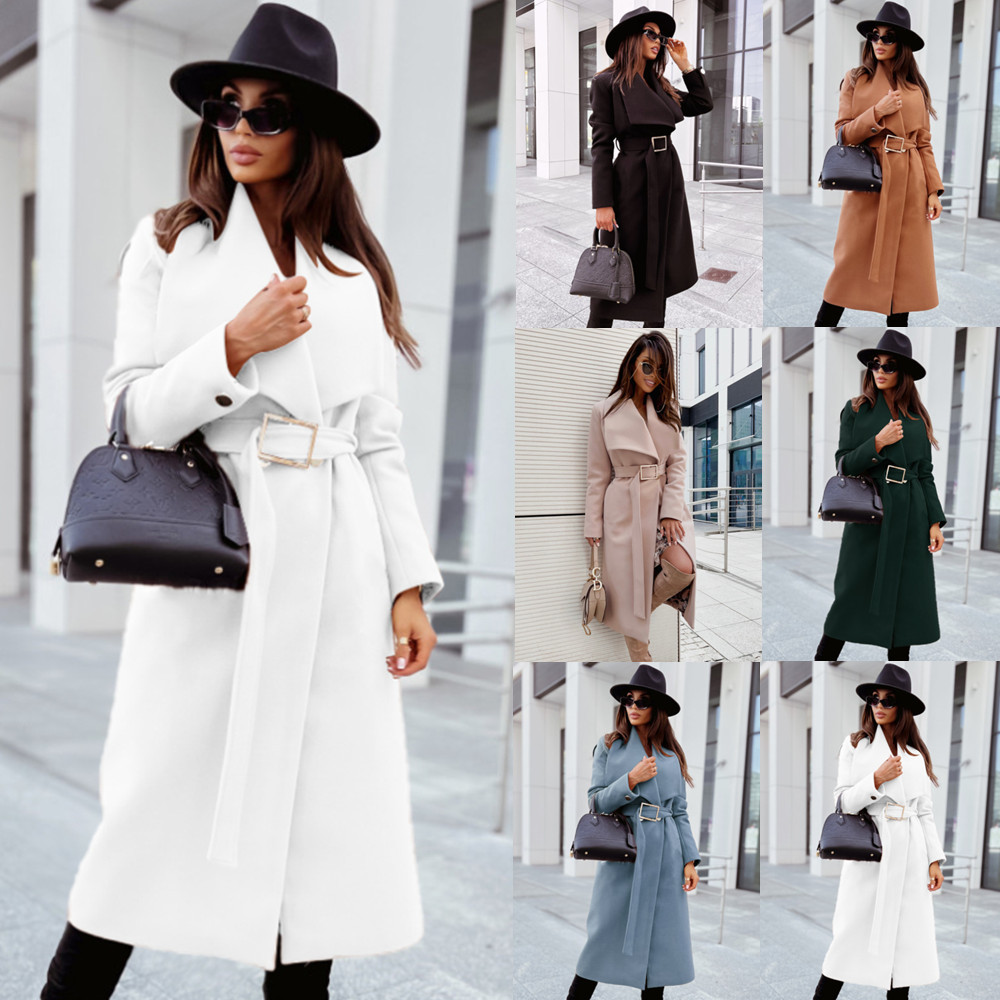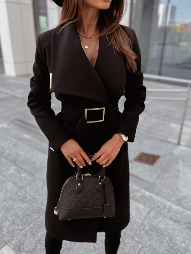 Simple Long Sleeve Button V-Neck Tie Woolen Jacket Women's
