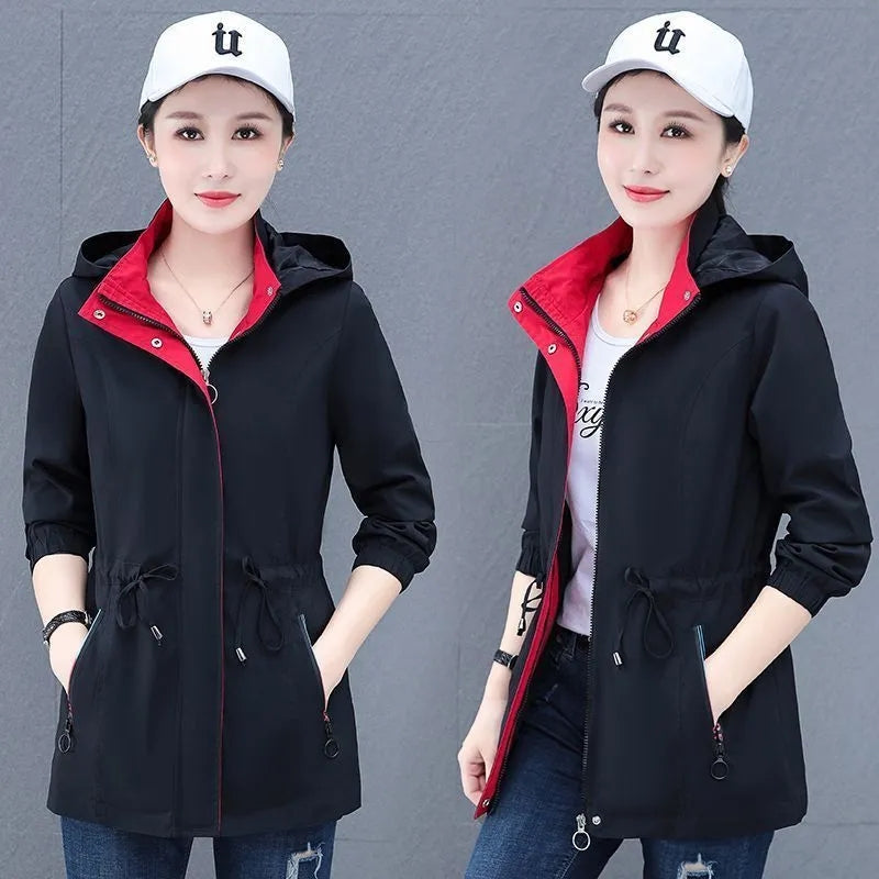 Spring Autumn Female Windbreaker New Solid Hooded Zipper Mid Length Velvet Winter Jacket Coat Women Outerwear Gabardina Mujer