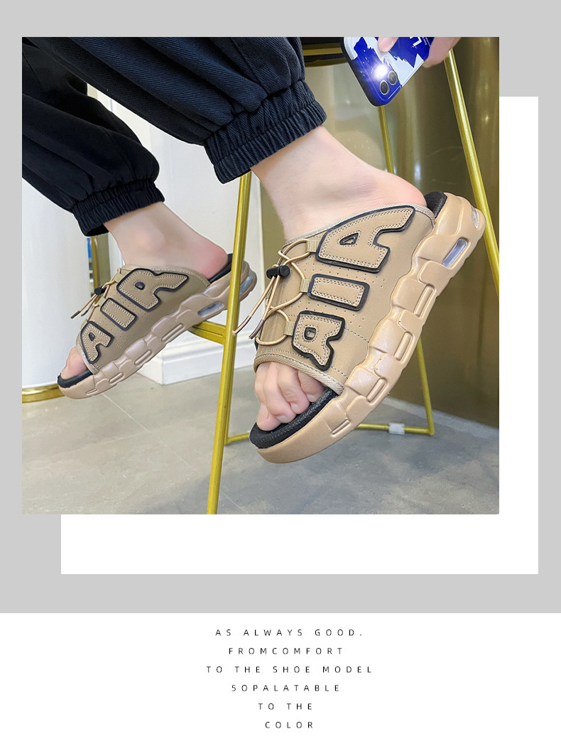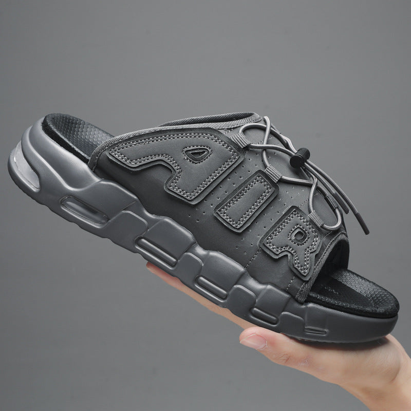 Summer new PU air cushion slippers slip-on men's shoes outdoor slip-on casual Korean style beach shoes cross-border plus size