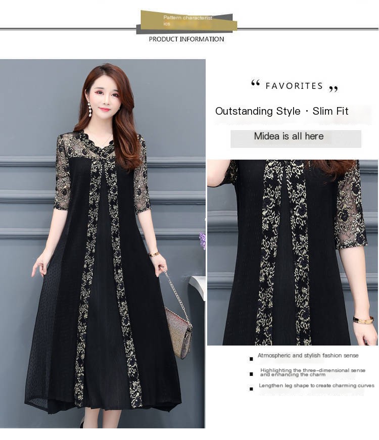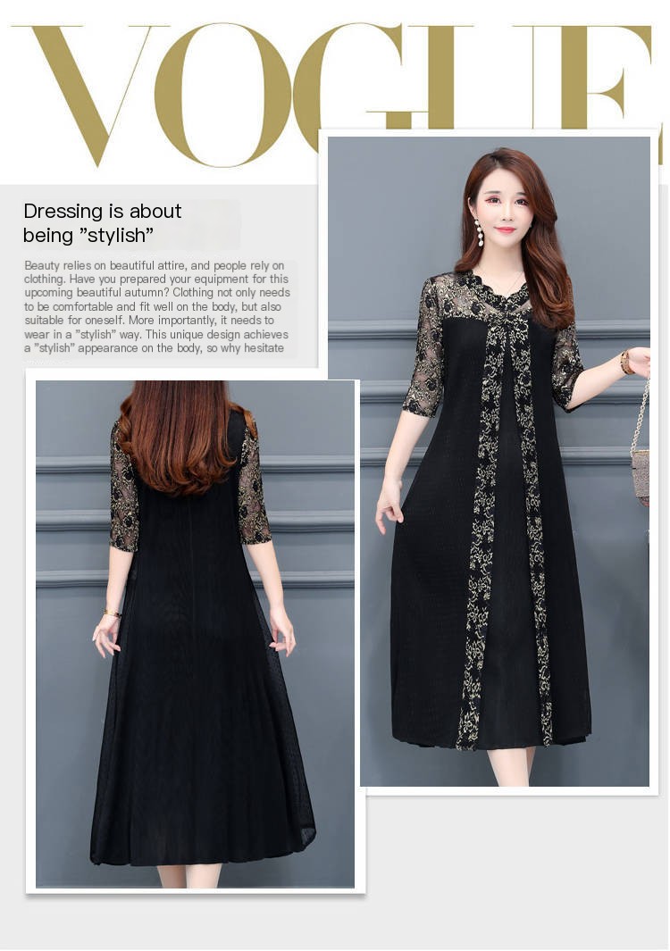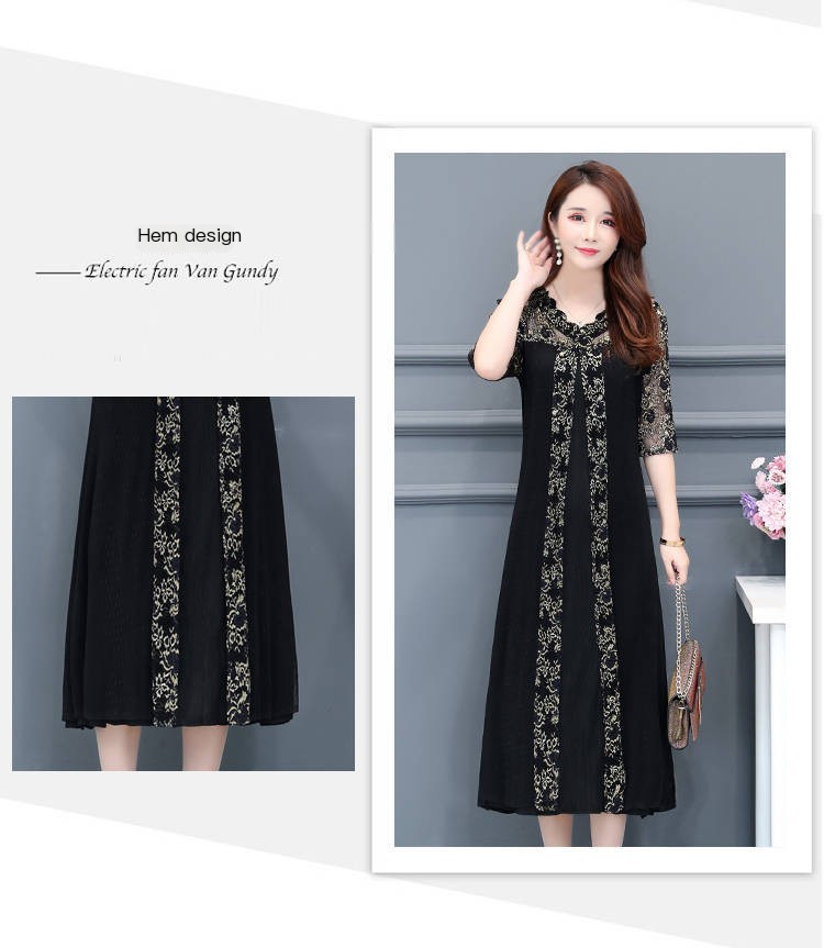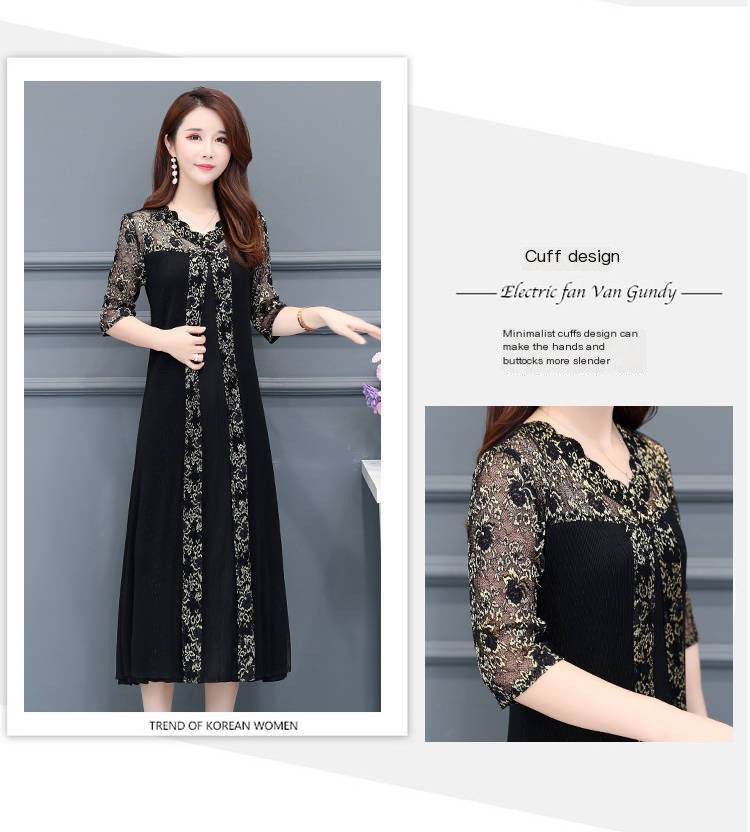 Temperament dress loose five-point sleeves lace women's large size large swing long skirt
