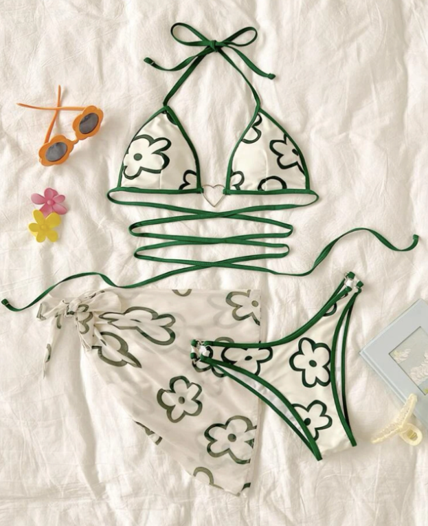 Three-piece swimsuit bikini with heart straps (set)
