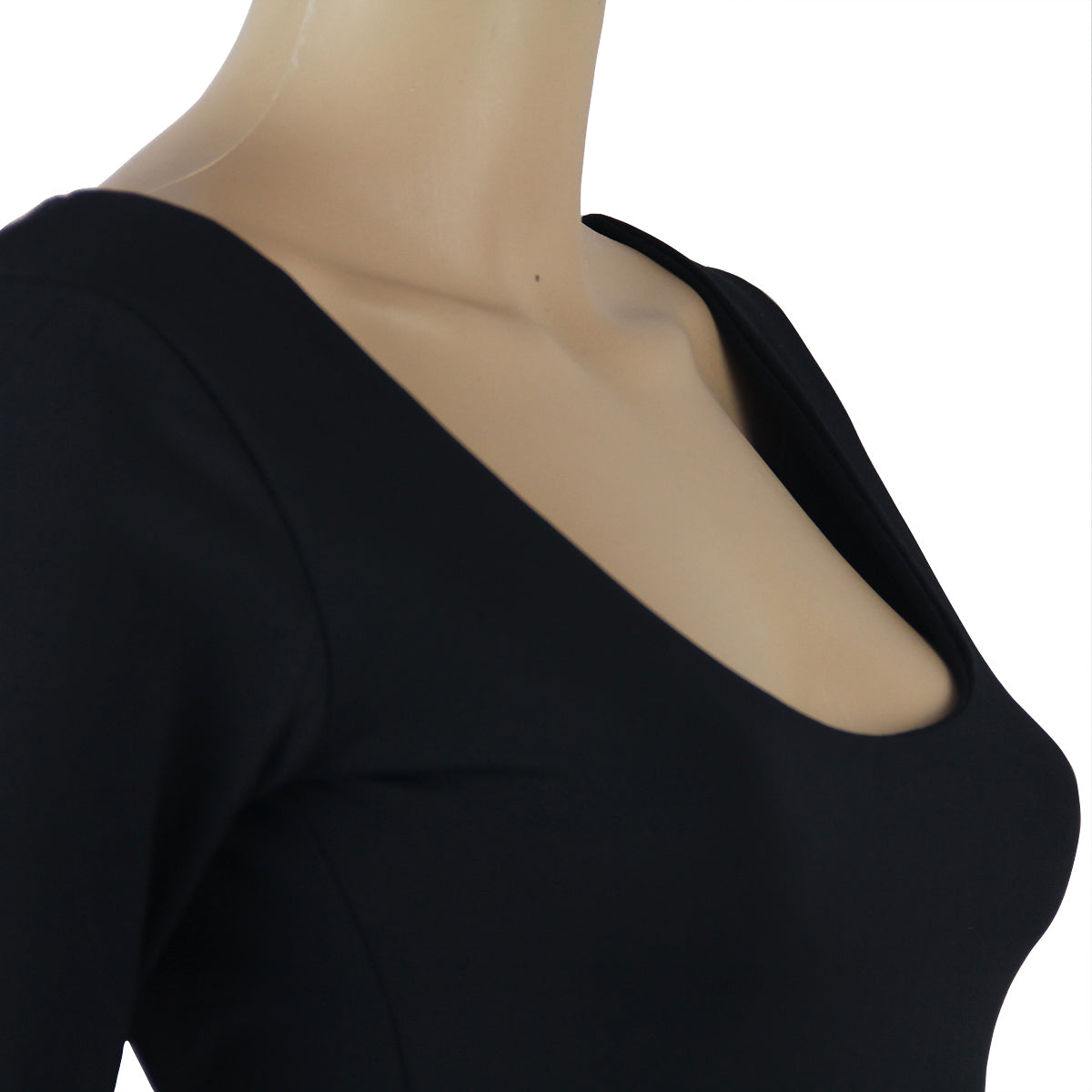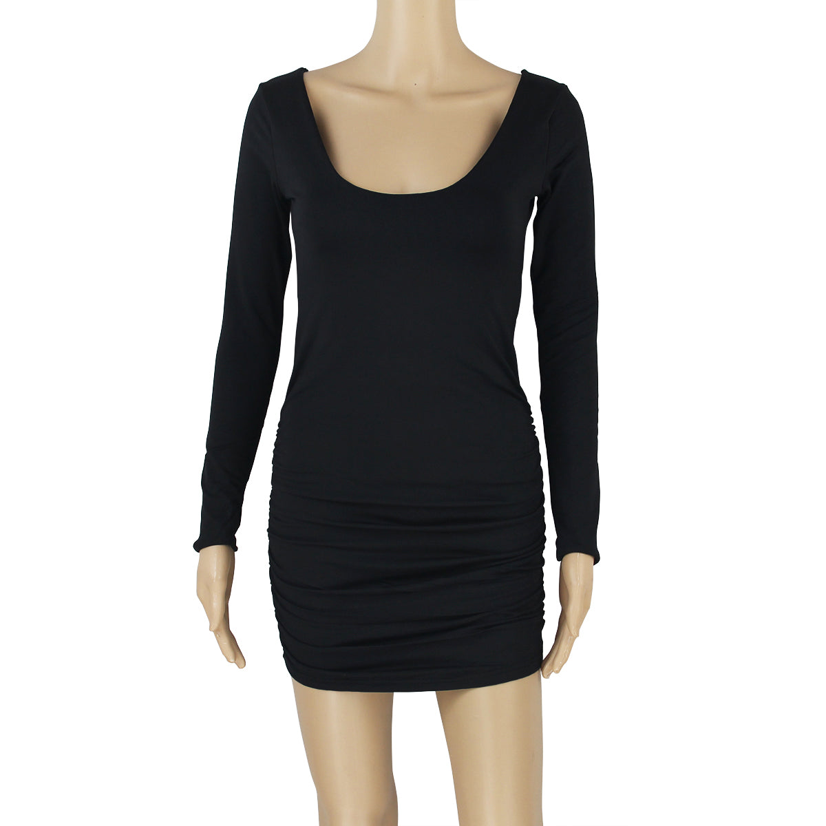 USA Size Black and white long sleeve sexy dew backpack hip fold nightclub dress