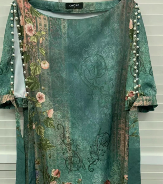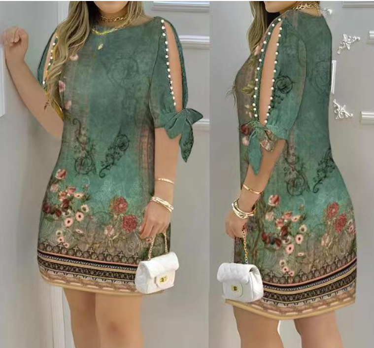 Vestido Curto Raffina Manga com Fenda e Pérolas