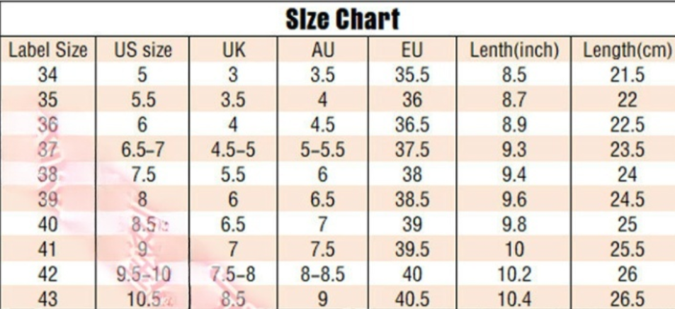 Size: 34,35,36,37,38,39,40,41,42,43