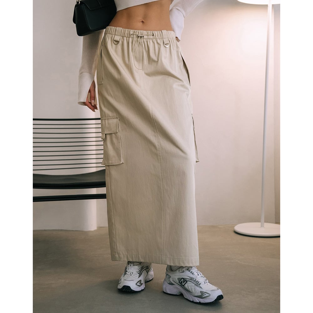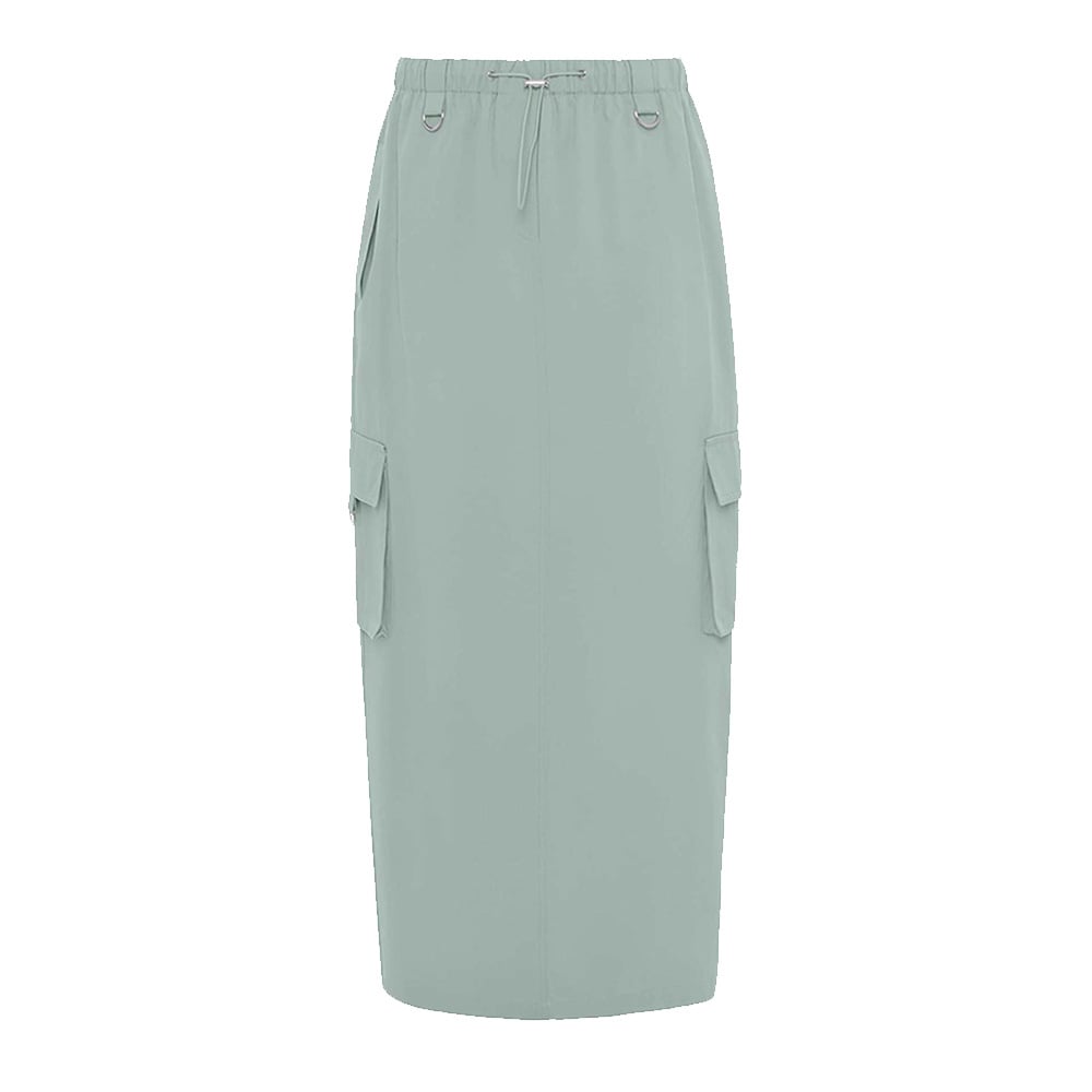 Women's Fashion Drawstring Elastic Waist Double Pocket Cotton High Waist Skirt