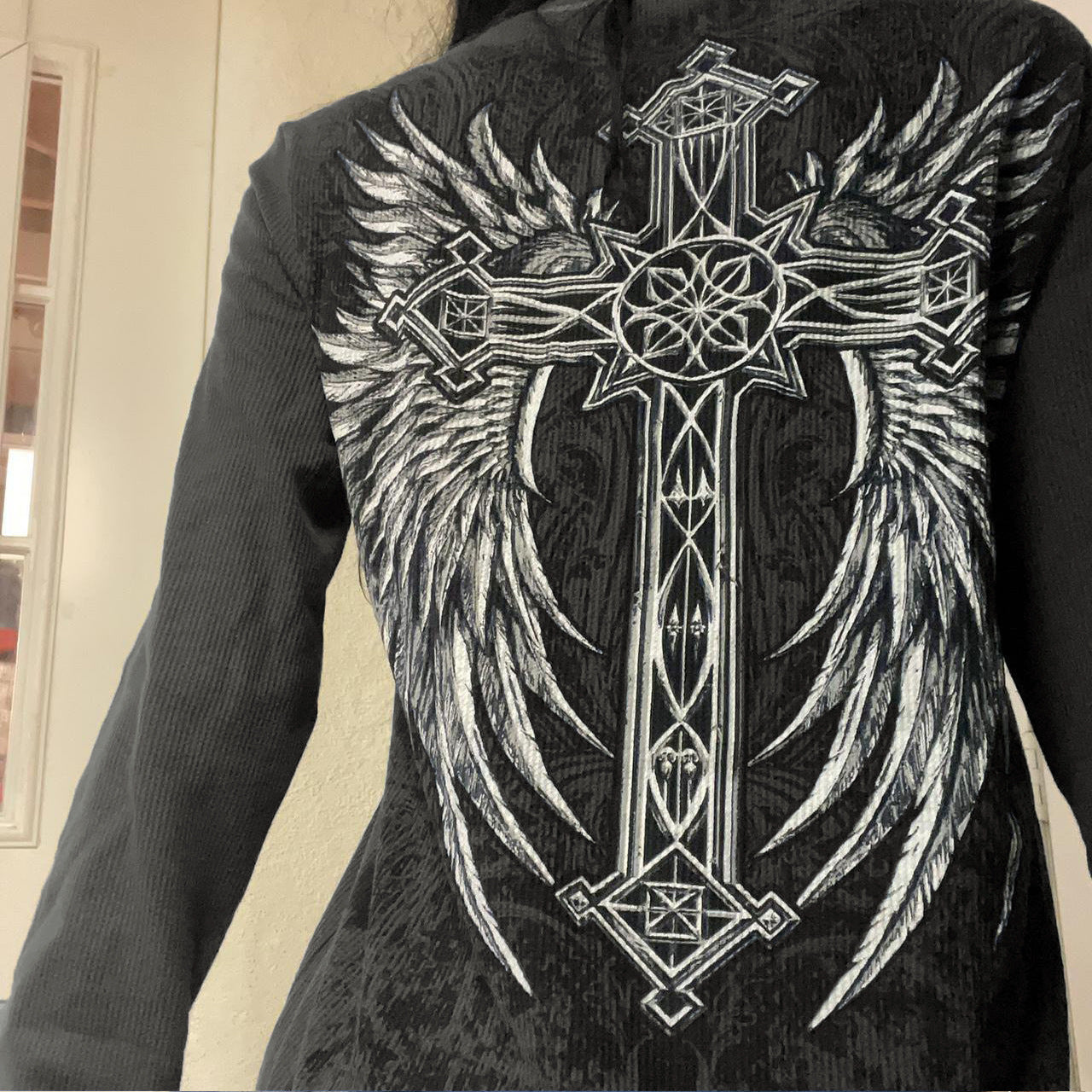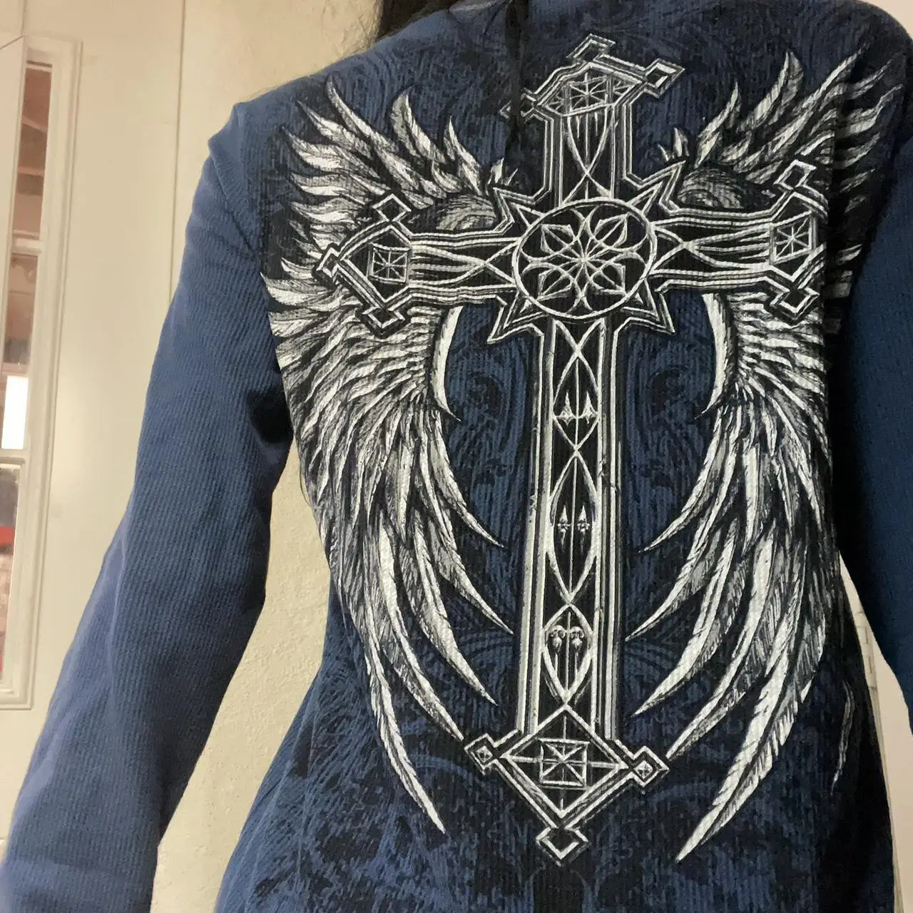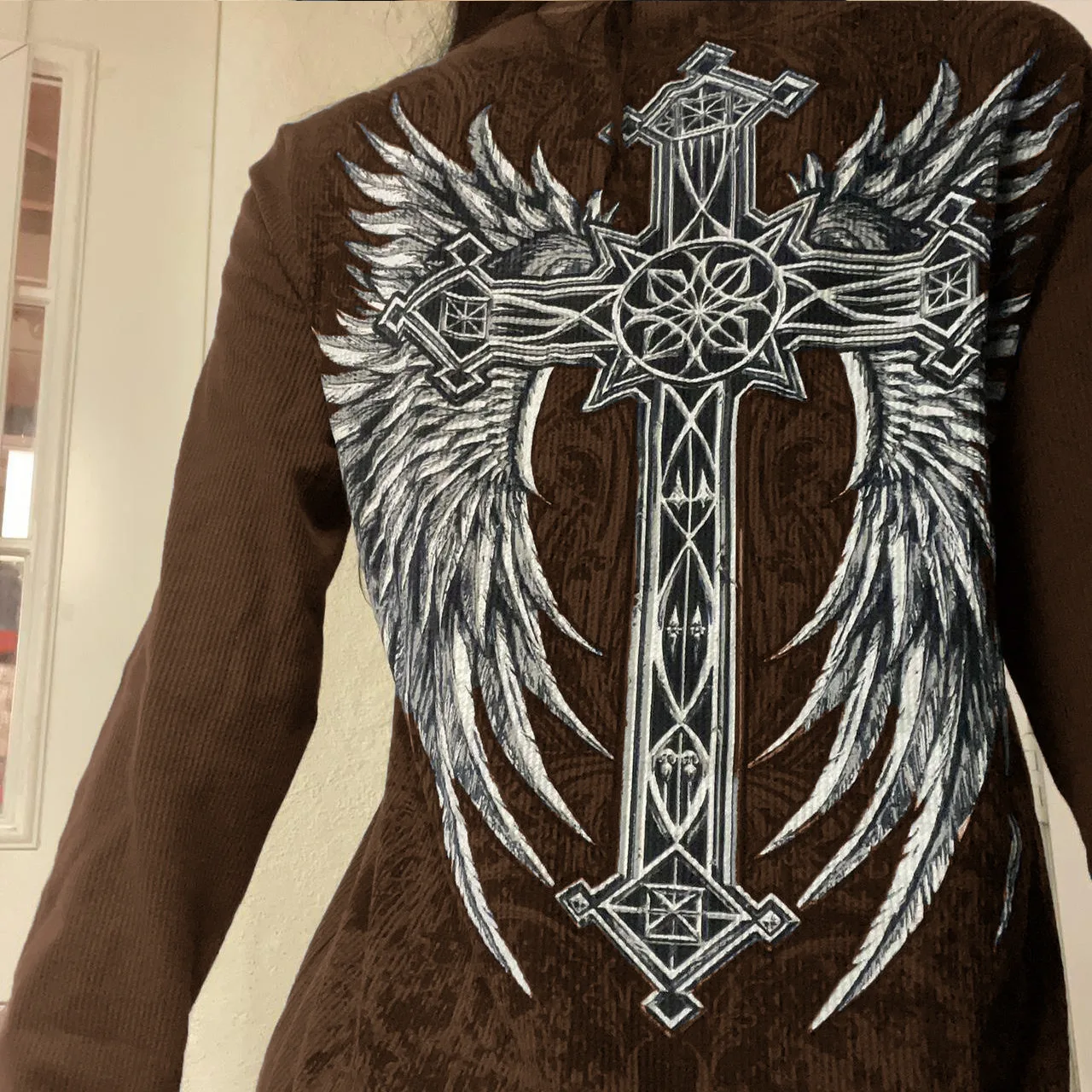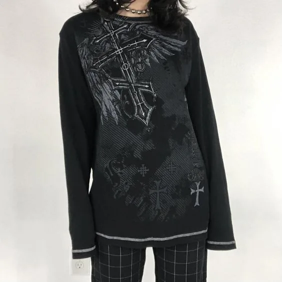 Printed long T-shirt casual retro long-sleeved printed top for women