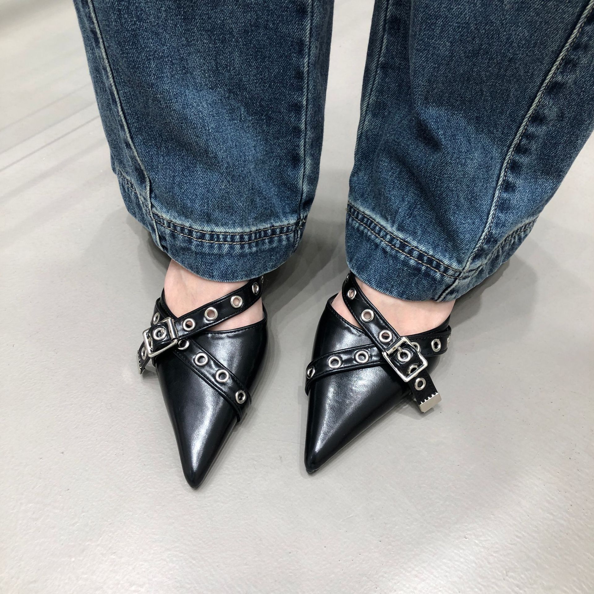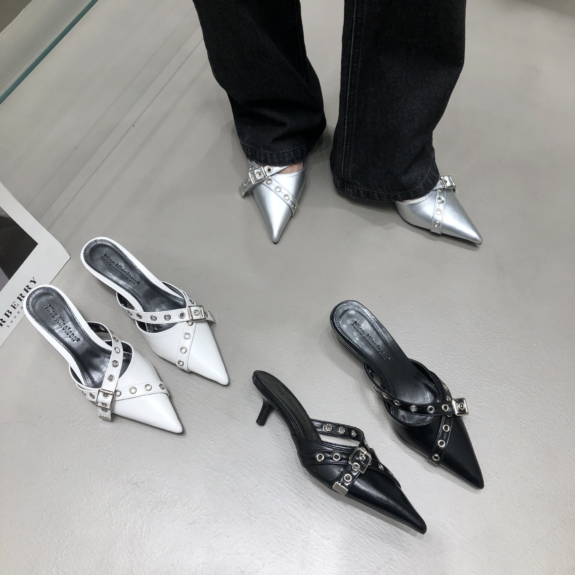 Women's Summer Toe Cap Semi Slipper Elegant Metal Buckle Set
