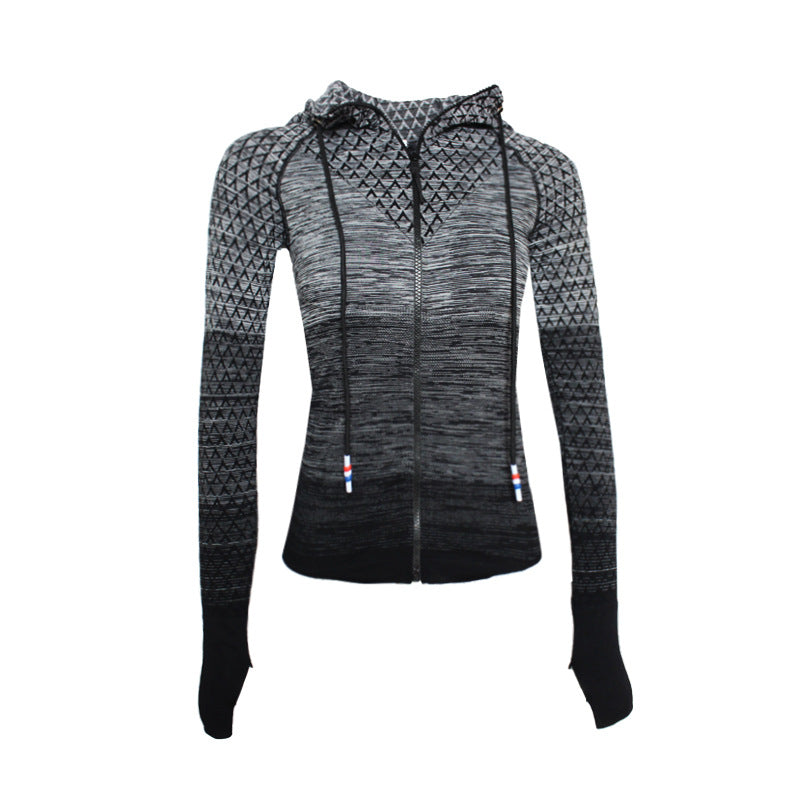 Women's Winter Sports Jackets Slim Zipper Hooded Gym Tops Long Sleeves Sportswear Outdoor Running Yoga Fitness Seamless Coat