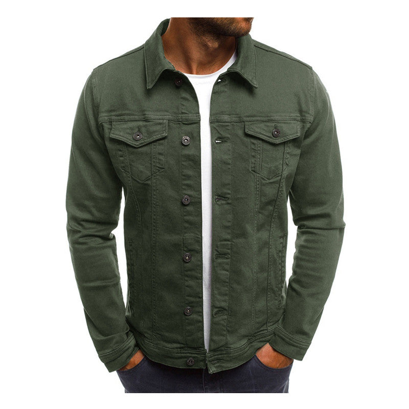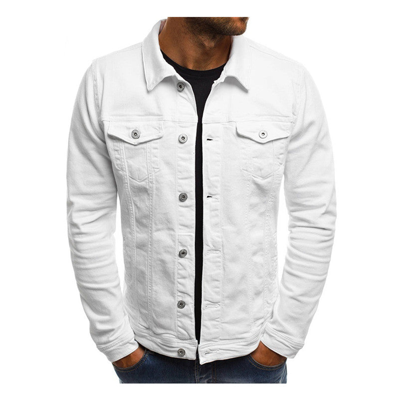 Fashionable and casual slim-fit denim jacket with multiple pockets, button-down collar and work jacket